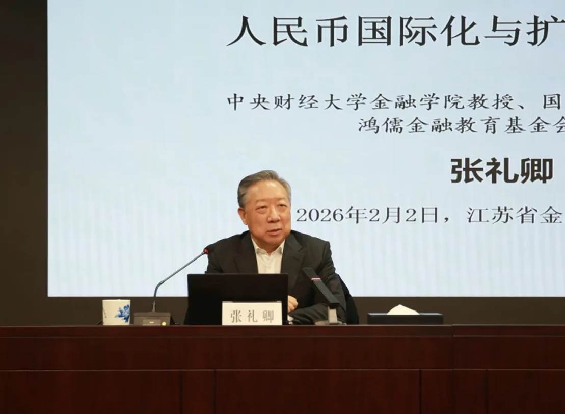 2026年2月2日,鸿儒金融教育基金会、江苏省金融学会和江苏省金科数字与科技金融研究院联合举办“江苏金融论坛・第4期”。鸿儒金融教育基金会理事长、中央财经大学经济学教授、国际金融研究中心主任张礼卿出席论坛,并围绕“人民币国际化与扩大金融开放”作学术讲座。