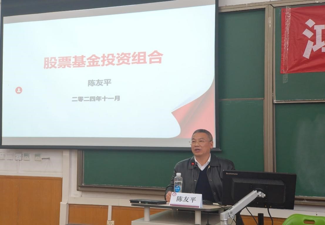 11月28日,2023-2024学年秋季学期“鸿儒金融实务系列讲座”第四讲在对外经济贸易大学博学楼301教室成功举行。本场讲座主题为“股票基金投资组合”,由陈友平先生担任主讲嘉宾,对外经济贸易大学中国金融学院严渝军副教授主持讲座。