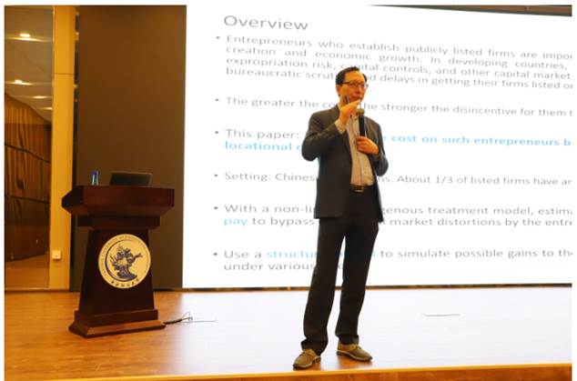 6月27日,“鸿儒大讲堂(二)”暨“国际金融名家论坛(三)”在中央财经大学沙河校区图书馆举行。国际著名华裔学者、美国哥伦比亚大学终身讲席教授、亚洲开发银行前首席经济学家、复旦大学泛海国际金融学院金融经济学学术访问教授魏尚进分享了其最新的研究论文 “Capital Market Distortions and Reform Dividends: Evidence from IPO Locational Choices(资本市场扭曲与改革红利:来自IPO地点选择的证据)”。鸿儒金融教育基金会理事长张礼卿教授,中央财经大学金融学院院长张学勇教授,鸿儒金融教育基金会秘书长徐霄,以及校内外师生和学者150余人参加本次讲座。张礼卿理事长代表鸿儒金融教育基金会向魏尚进教授赠送了专门订制的“鸿儒大讲堂”纪念盘。 ![]()