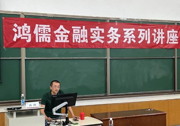 5月30日, 2023-2024学年春季学期“鸿儒金融实务系列讲座”第二讲在对外经济贸易大学博学楼301教室举行。本次讲座主题为“债券投资实务”,由北京古山投资管理有限公司总经理高固先生担任主讲嘉宾,对外经济贸易大学中国金融学院严渝军副教授参与并主持讲座。
